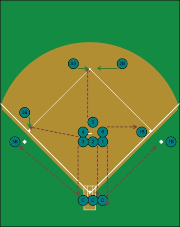 The 6 pitcher drill gives you the opportunity to rotate all the staff through a series of pickoff moves, as well as working on pitch location.