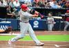 Concentrate on seeing the ball and hitting it hard, preferably line drives and ground balls.
