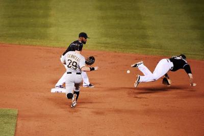 He did try to get up and throw to second base for the force, but was too late.